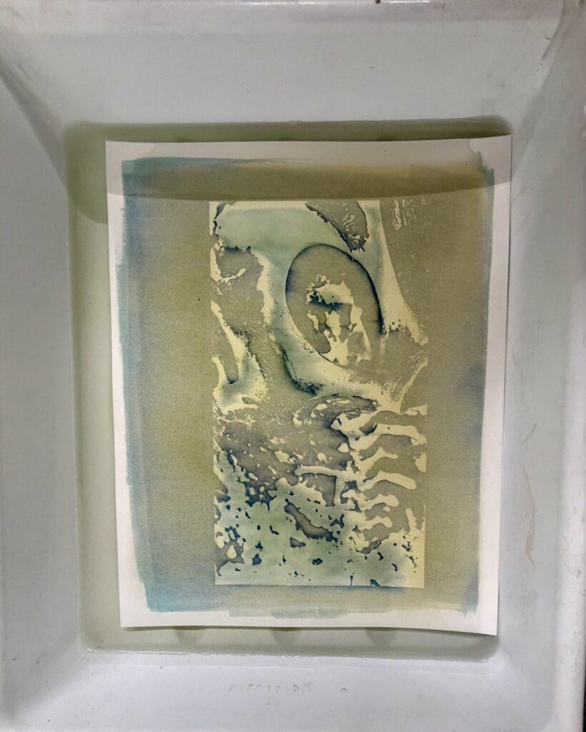The process is the same today and relatively simple. It involves coating paper with a chemical compound and then placing an object or a negative on it. The paper is exposed to UV light or sunlight, and water is all that is needed to develop the image.