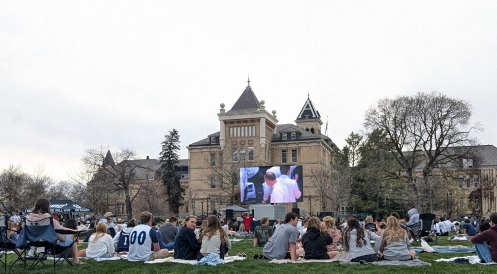 March 20, before the Aggies’ first round of the NCAA Tournament, a jumbotron is set up on the quad in front of Old Main. Students gathered on the quad with blankets and Aggie gear, ready to watch the game. During the game, students were cheering, singing the Scotsman and even swing dancing during commercial breaks. The Aggies won against the Villanova Wildcats by 10 points, 86-76. The Aggies moved forward to the second round of the NCAA tournament.